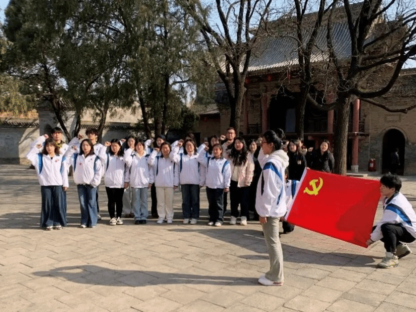 师生们精神饱满地集结出发。途中,带队教师生动讲述了安吴青训班的历史背景:这座由中共中央青年工作委员会于1937年创办的战时青年干部学校,在抗战烽火中培养了万余名革命青年,被誉为“中国青年运动的丰碑”。