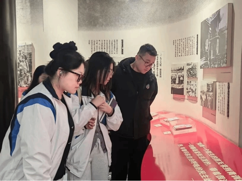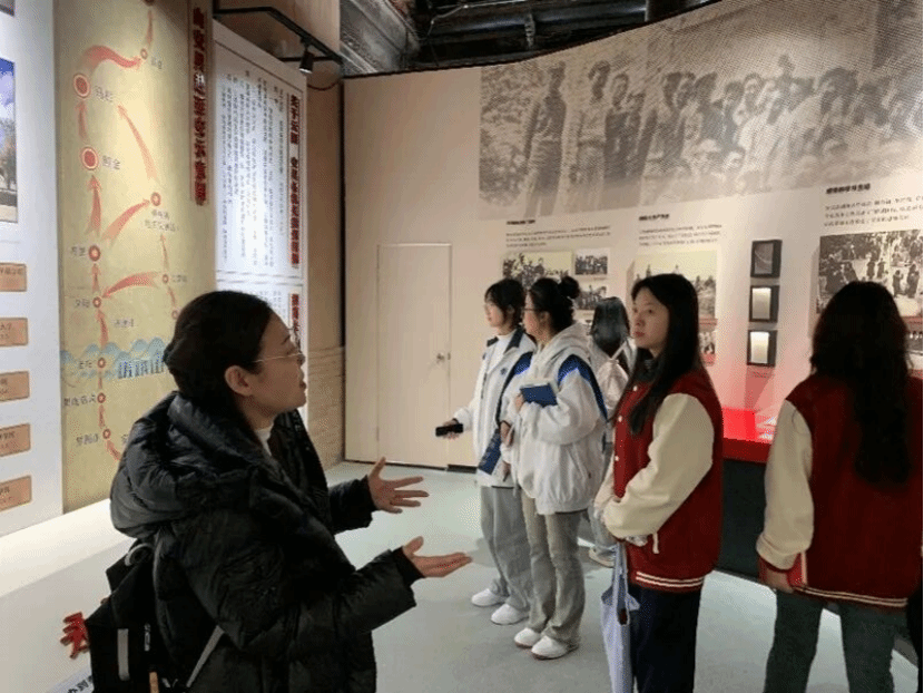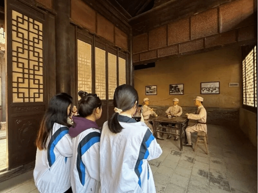 踏入纪念馆,在讲解员的引导下,师生依次参观了教学旧址、历史展厅和场景复原区。泛黄的学员笔记、斑驳的抗战标语、朱徳总司令“学好本领上前线”的题词手迹……一件件文物将历史鲜活重现。