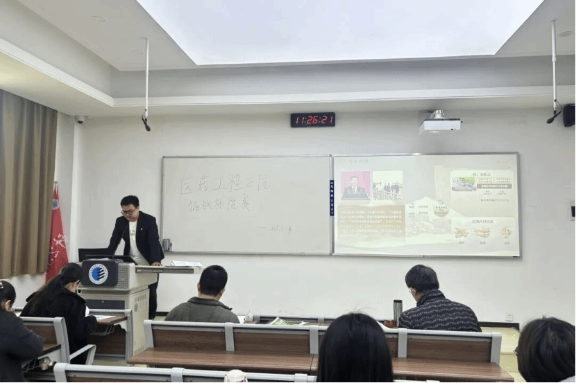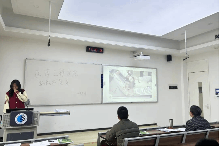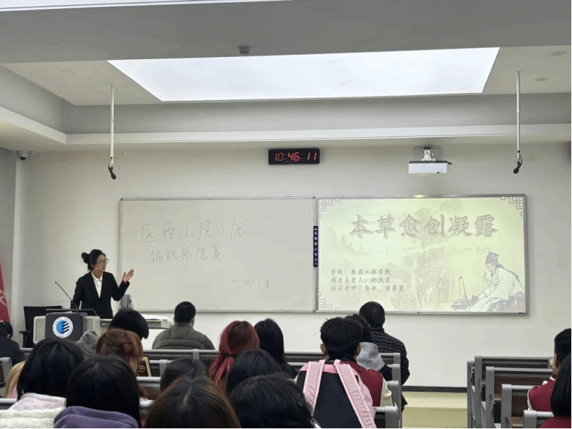 在当今快节奏、高压力的现代生活背景下,人们对健康品质的追求愈发显著,中药——这一蕴含深厚历史文化底蕴的传统资源,正逐渐融入日常生活,成为提升生活质量的重要元素。为响应我校号召,我院于2025年3月13日,于教学楼110教室举办“挑战杯”竞赛,由李楚老师主持。为确保比赛的顺利进行,我院参与此次比赛的评委老师有牛乐博士、王科博士和贾田芊老师,他们将为此次竞赛进行公平、公正的评选,并提供指导帮助与支持。