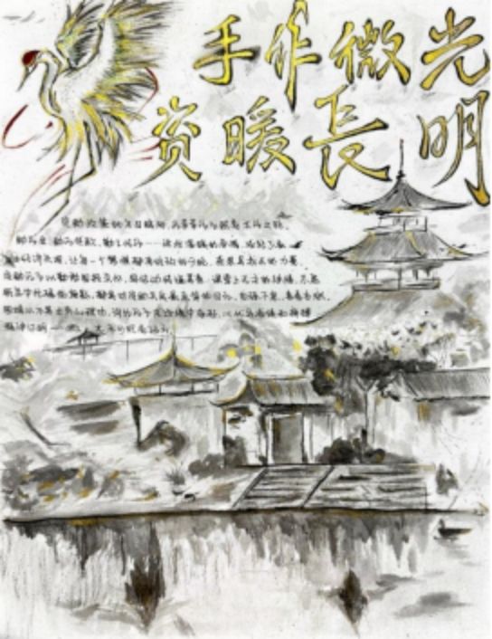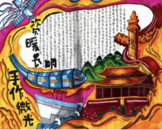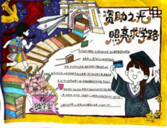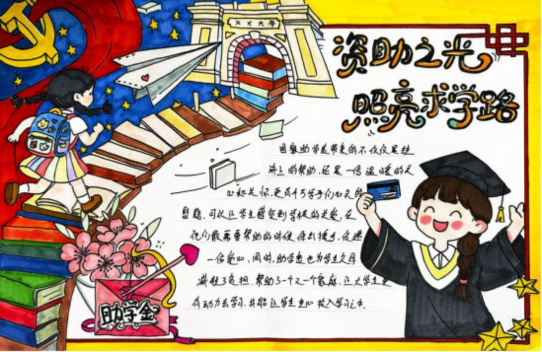 “手作微光,资暖长明”手抄报活动:同学们以珠光水彩、马克笔等精心创作,将政策解读、感恩之情、励志成才的信念倾注于方寸之间。