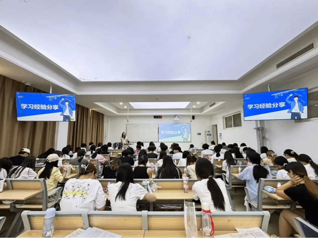 紧接着,几位在不同板块表现突出的同学依次上台,围绕“听力速记技巧”“阅读题干定位法”“写作模板搭建”“翻译关键词抓取”等核心要点,分享了兼具实用性与针对性的备考心得。他们既谈到了“每天精听一篇真题材料培养语感”的坚持,也提到了“考场上遇到陌生词汇先跳读”的灵活策略,更用“模拟考分数波动是正常调整”的亲身经历,鼓励同学们放下焦虑,强调“最后冲刺阶段,扎实复盘一道错题胜过盲目刷十套题”,呼吁同学们以“稳扎稳打”的姿态筑牢基础。