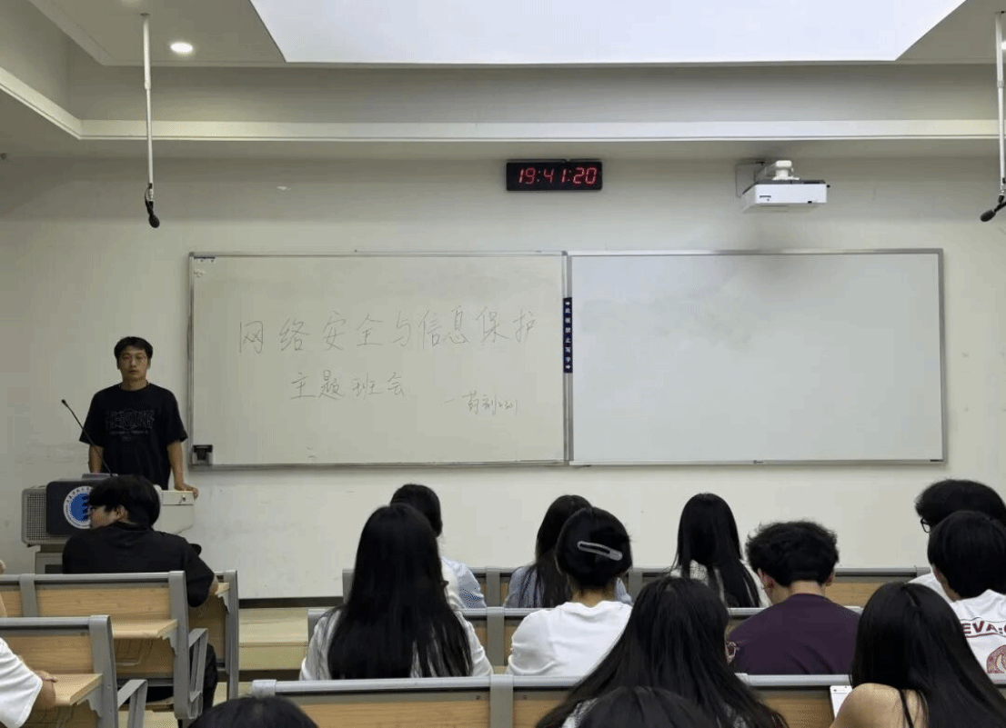在数字化浪潮不断深入的今天,网络已全面融入校园生活,为师生的工作、学习与交流带来便捷的同时,也带来了诸多网络安全与信息保护方面的挑战。为进一步增强全院学生的网络安全意识,提升信息防护能力,营造清朗和谐的网络环境,学院组织全院各班级于2025年9月14日晚自习陆续开展了以“网络安全与信息保护”为主题的班会活动。