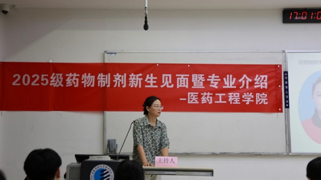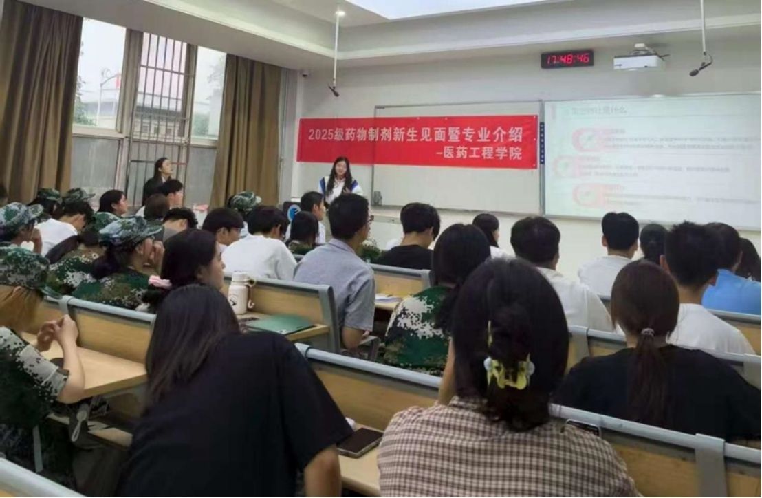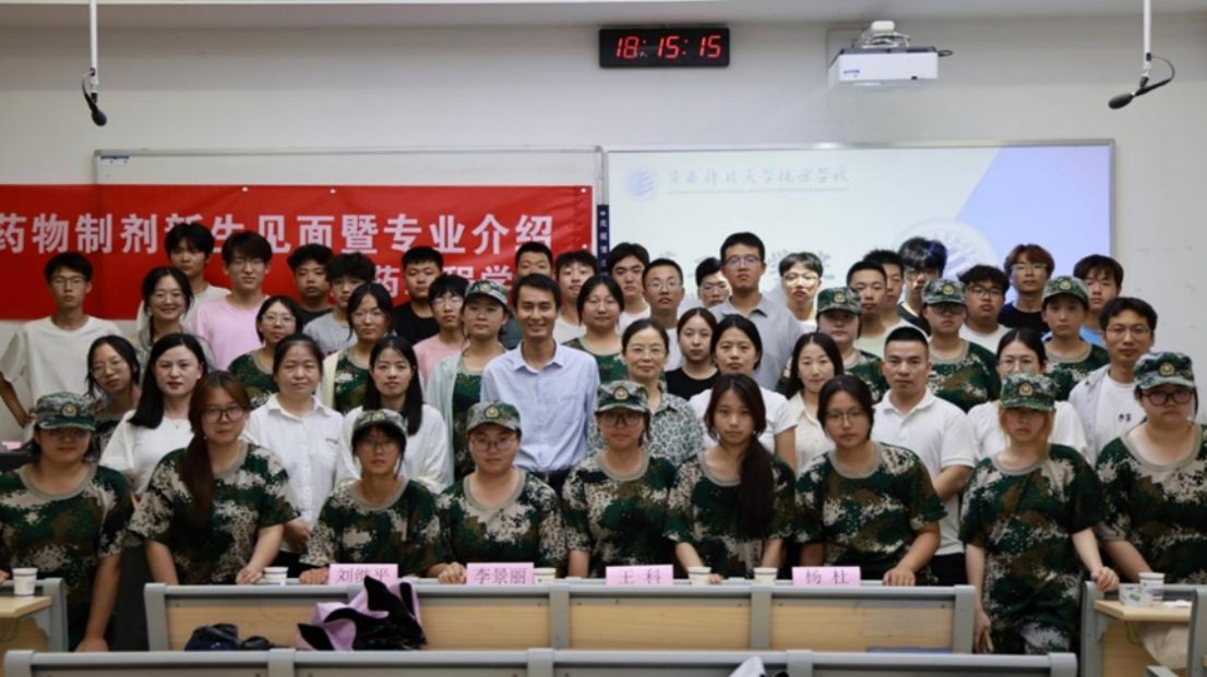 为热烈欢迎2025级药物制剂专业新生的到来,助力新生快速熟悉药物制剂专业概况、清晰锚定学习目标、科学规划校园生活,进一步加强新生对专业的认同感与归属感,2025年9月2日,药物制剂专业2025级新生见面暨专业介绍会在教学楼104教室隆重召开。药物制剂专业带头人刘继平教授、李景丽副教授、王科博士,教研室主任杨杜老师以及全体教师与2025级药物制剂专业新生齐聚一堂,共同开启这场饱含欢迎暖意又兼具专业指导价值的专业介绍会。