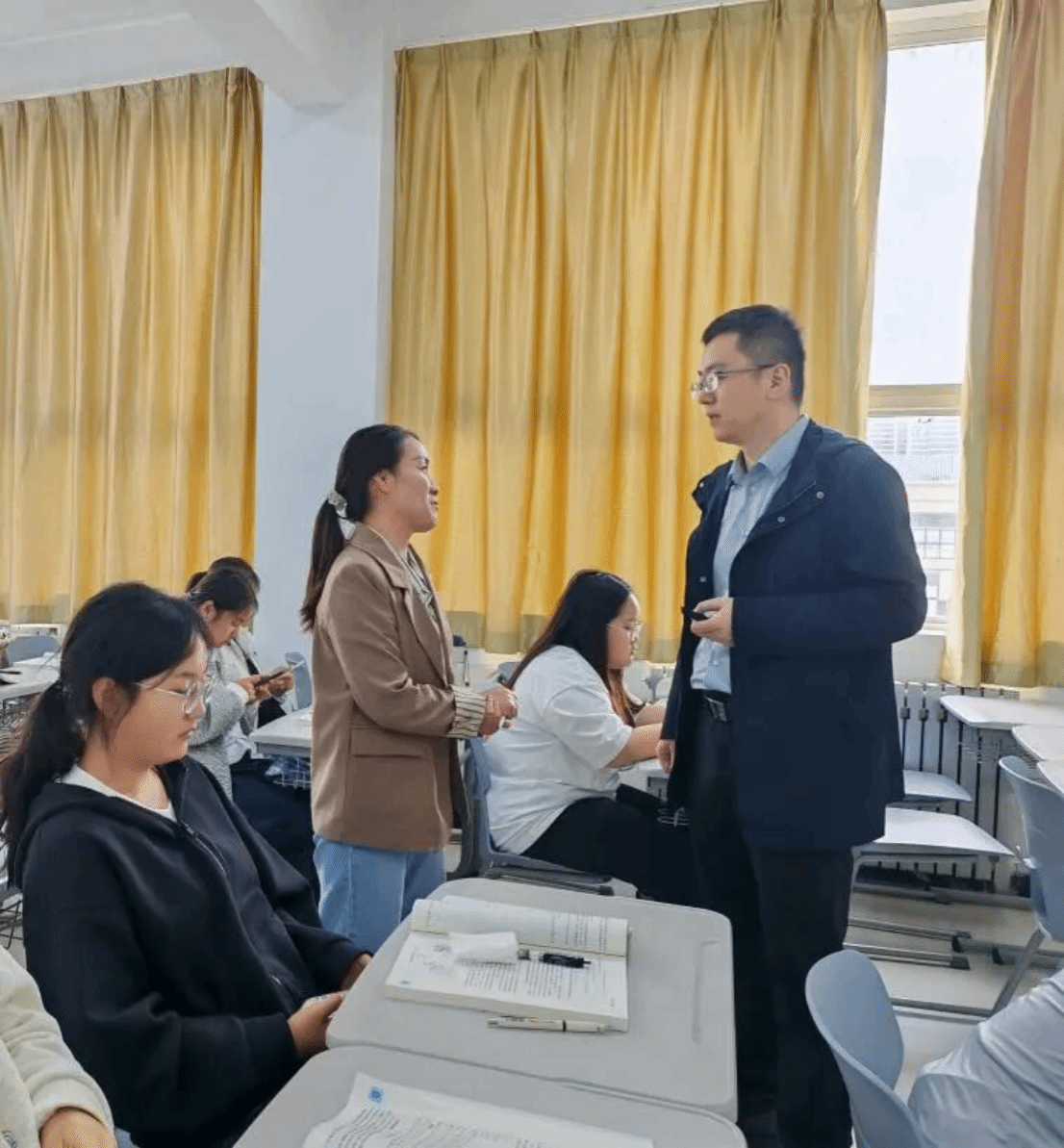 听课教师与王育伟老师课间互动