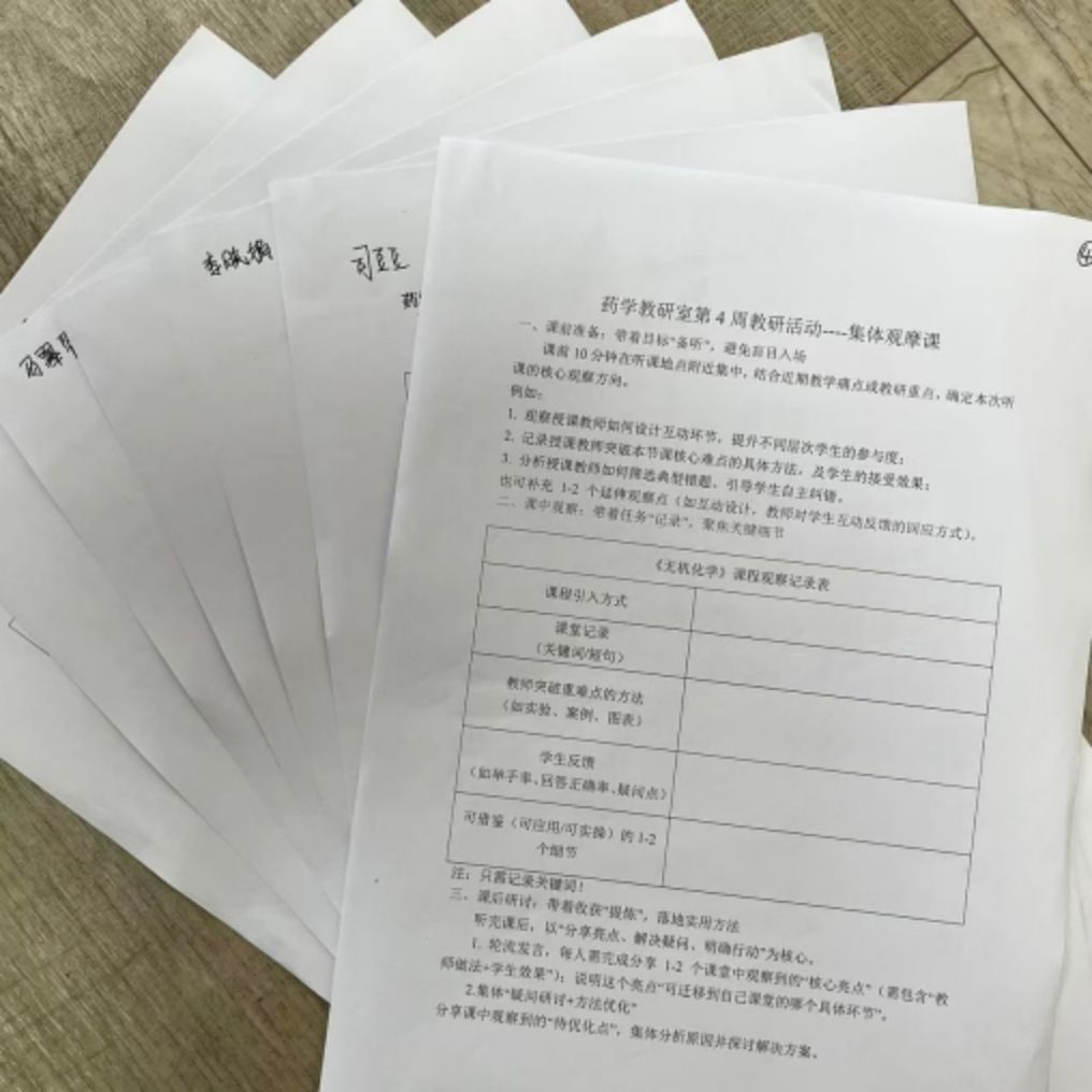 活动前期,药学教研室围绕核心课程教学中普遍存在的互动设计、重难点突破、错题引导等共性痛点,为参与教师明确了三大观察目标:一是关注教师如何有效设计互动,调动不同基础学生的学习积极性;二是记录重难点内容的突破方法及学生接受效果;三是分析典型错题的筛选与自主纠错策略。通过课前定向聚焦,确保每位青年教师带着“问题意识”走进课堂,避免观摩流于形式。