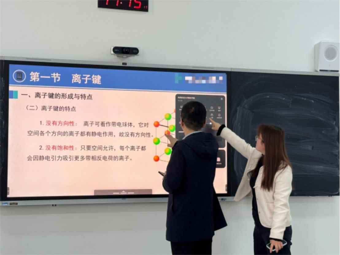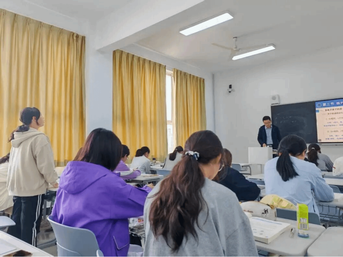 在教学展示环节,王育伟老师围绕“核外电子排布”章节,以“知识回顾—新知建构—能力升华—教学支持”为逻辑主线,呈现了一节系统严谨、富有深度的专业课堂。在知识回顾环节,他通过精准提问策略,引导学生重温“量子数”等核心概念,有效激活学生已有认知,为新知学习奠定基础。在新知讲授部分,王老师以“原子结构的近似能级”为重点,融合学科前沿动态与科研实例,采用板书勾勒知识框架、PPT辅助呈现数据与案例的多模态教学手段,构建起层次分明、内容充实的教学体系。在难点突破方面,他通过“前置预习提示—课中关联引导—课后总结巩固”的全流程支持策略,帮助学生构建“预习—学习—复习”的完整认知链条,显著提升教学实效。整节课不仅展现了王老师扎实的专业功底和清晰的教学逻辑,也为观摩教师提供了科研反哺教学、课程思政有机渗透、多模态辅助教学相结合的先进范式,实现了教学方法可复制、可迁移的示范目标。