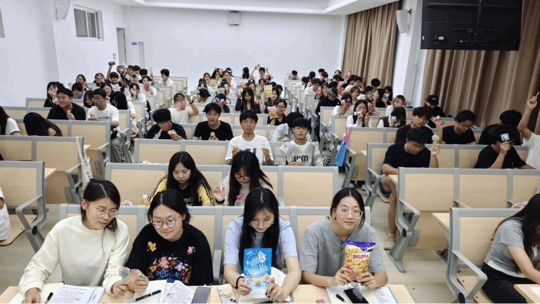 此外,李楚老师代表学院为24级学生准备了丰富的小零食:甜蜜清爽的果冻、香脆可口的虾条、色彩缤纷的棒棒糖、酸甜可口的果干等。这份心意让同学们在专注备考交流的间隙,感受到了来自老师的细致关怀,也让原本以学习分享为主的交流会,多了一份轻松融洽的氛围,更拉近了师生之间的距离,让大家在忙碌的备考阶段,收获了一份温暖的小确幸。这些小零食不仅是简单的味觉补给,更成为了本次交流会中传递关怀、凝聚人心的小纽带,让大家在轻松的氛围里更愿意敞开心扉交流学习心得,为后续的四级备考注入了更多积极的动力。